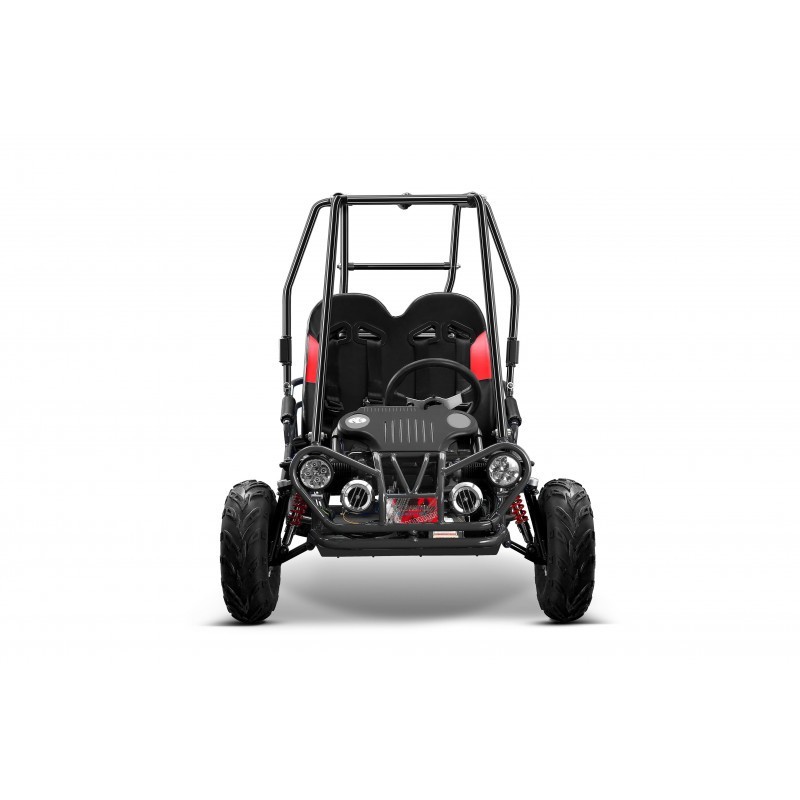 buggy mají na rozdíl od čtyřkolek volant a bezpečnostní rám. Pokud hledáte opravdový adrenalin, jste na správném místě. Buggy Predator je vhodná pro uživatele s výškou cca od 100cm do 160cm, je vybavena bezpečnostním rámem a bezpečnostními pásy. Velkou výhodou je nejen elektrický startér, kterým se nechá buggy. nastartovat a vypnout, ale také přední osvětlení a nožní brzda. Buggy jsou dvoumístné s pohonem zadních kol.Součástí je dálkové ovládání díky kterému můžete buggy na dálku vypnout. Přední osvětlení LED. Maximální rychlost až 45 km/h.