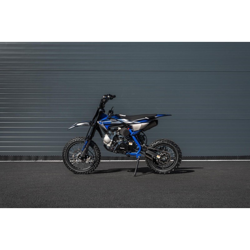Dětská benzínová motorka pitbike Leramotors Cannon 125ccm 4T 14/12 E-Start s motorem o objemu 125 ccm a výkonem 8 kW poskytuje ideální kombinaci síly a spolehlivosti jak pro zkušenější zapálené bikery, tak i pro začínající motorkáře. Jednoválcový, 4-taktní motor je chlazen vzduchem, což zajišťuje efektivní provoz i v náročnějších podmínkách. Díky nožnímu i elektrickému startování je motorka snadno ovladatelná, ať už v terénu, nebo při klidné jízdě. Elektronické zapalování C.D.I. zajišťuje rychlý start a stabilní provoz.