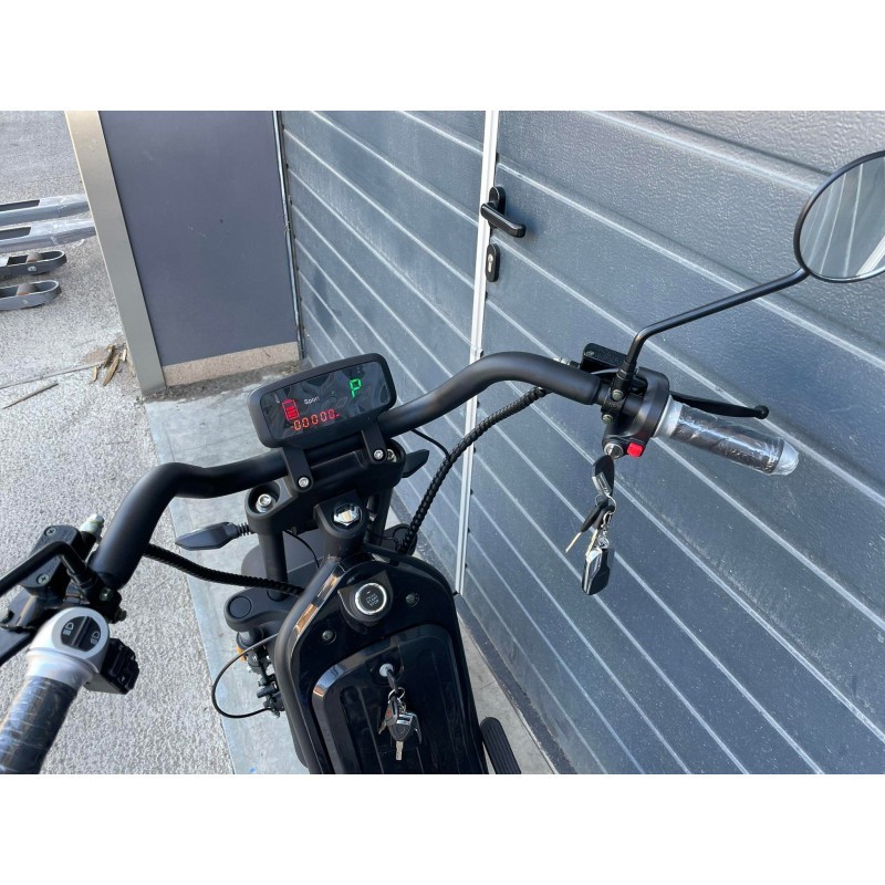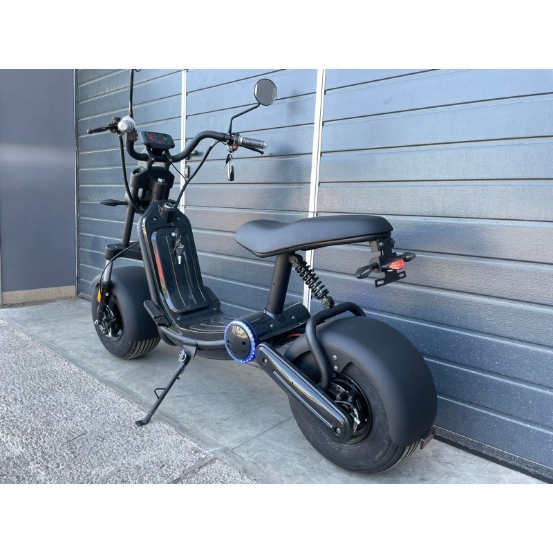 Tato koloběžka vás oslní nadčasovým designem amotorem o výkonu 2000w který zajištuje silnou akceleraci a rychlost až 65km/h. Ještě pohodlnější jízdu vám zajistí ,výklopné stupačky v přední části, díky kterým můžete mít nohy pohodlně natažené.