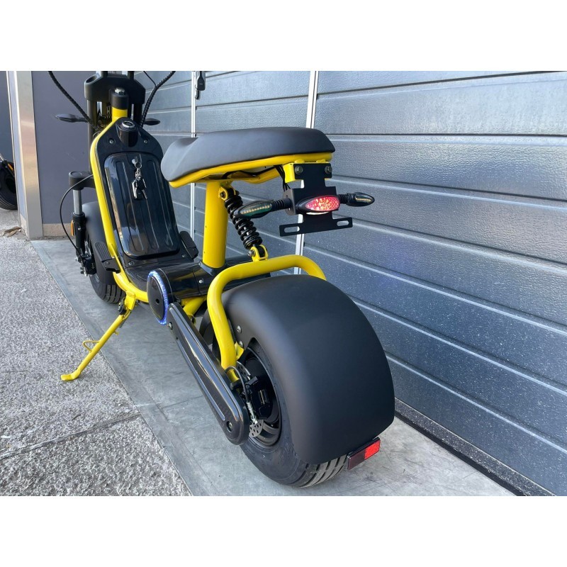 Tato koloběžka vás oslní nadčasovým designem amotorem o výkonu 2000w který zajištuje silnou akceleraci a rychlost až 65km/h. Ještě pohodlnější jízdu vám zajistí ,výklopné stupačky v přední části, díky kterým můžete mít nohy pohodlně natažené.
