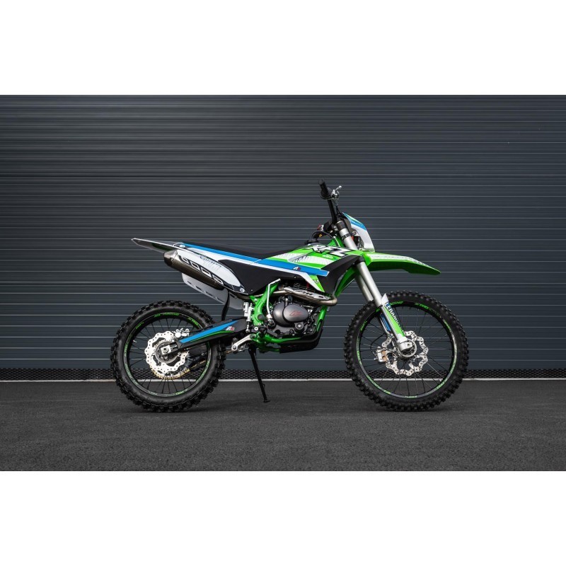 Pitbike Leramotors By Apollo THUNDER 250cc 21/18 je robustní terénní motorka ideální pro milovníky off-road jízdy. Pohání ji čtyřtaktní jednoválcový motor ZongShen CB250, který nabízí výkon 16 kW a maximální rychlost až 95 km/h. Motor je chlazen vzduchem a disponuje manuální pětistupňovou převodovkou pro snadné a přesné řazení. Pro pohodlí je motorka vybavena jak elektrickým, tak nožním startováním. S odolnými ráfky 21" vpředu a 18" vzadu a pneumatikami 80/100-21 a 100/90-18 má skvělou trakci v náročném terénu. Přední olejové tlumiče a centrální zadní odpružení zajišťují pohodlnou jízdu. Bezpečnostní prvky zahrnují hydraulické kotoučové brzdy, zatímco palivová nádrž o objemu 7,5 litru poskytuje dostatečnou kapacitu pro dlouhé výpravy.