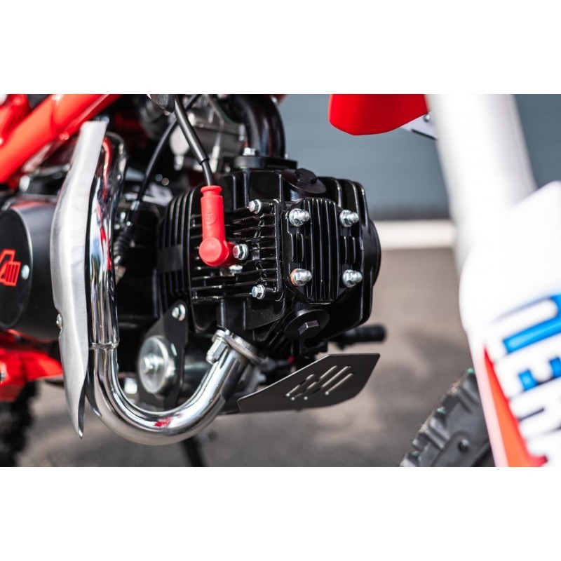 Dìtská benzínová motorka pitbike Leramotors by APOLLO THUNDER 125cc 17/14 E-Start je ideální volbou pro malé nadence do terénní jízdy i pro dospìlého meního vzrùstu. S výkonem motoru 8,5 kW a maximální rychlostí a 85 km/h tato motorka poskytuje dostatek síly pro nároèné off-road trasy. Ètyøtaktní jednoválcový motor o objemu 125 ccm zajiuje plynulý a spolehlivý chod, zatímco vzduchové chlazení pøispívá k udrení optimální teploty motoru pøi dlouhodobém pouívání. Elektrické CDI zapalování a duální startování elektrické i noní usnadòují rychlé a bezproblémové starty.