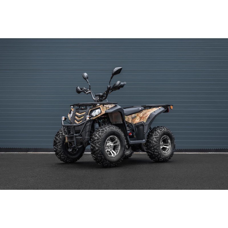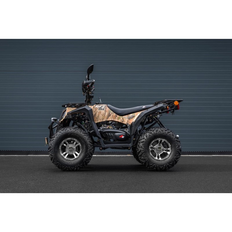 Tento benzínový model s homologací je moné pøihlásit na luté SPZ (certifikace T3B) øidièský prùkaz skupiny B. Ètyøkolka je vybavena vzduchem chlazeným ètyøtaktním motorem o objemu 250 ccm s konstrukcí GY6, která se vyznaèuje spolehlivostí a dlouhou ivotností. Motor o výkonu 7,3 kW je navíc opatøen vyvaovací høídelí, co výraznì sniuje vibrace a poskytuje plynulejí jízdu. Automatická pøevodovka s jednou rychlostí vpøed a zpáteèkou usnadòuje øízení, co ocení jak zaèáteèníci, tak zkuení jezdci.