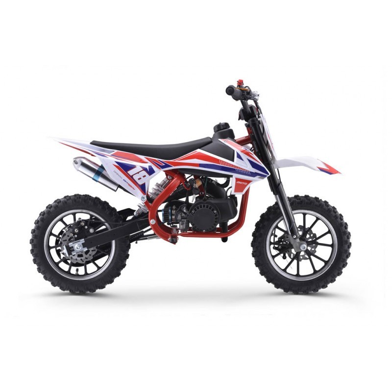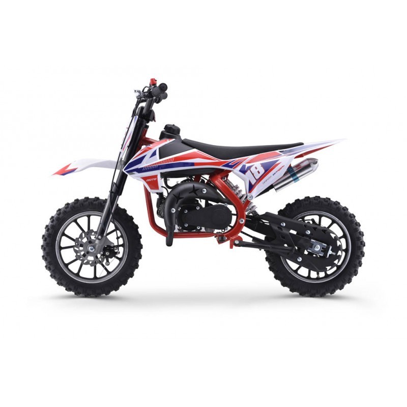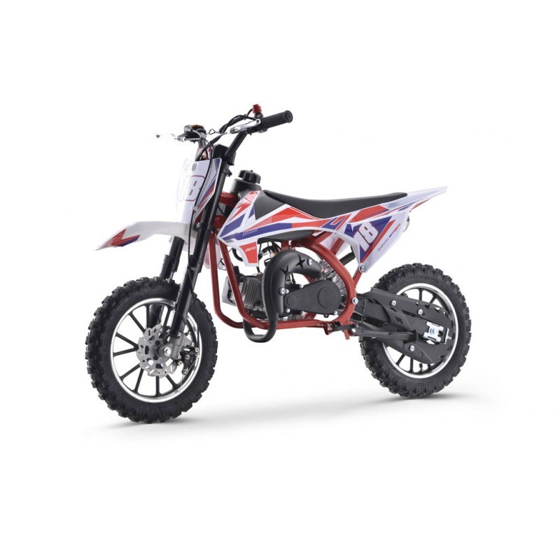 Motocykl Minicross Devil Deluxe 49cc 2t. Je čas na změnu. Tento model je jedinečný. Navíc je minicross osazen tuhostně stavitelným zadním tlumičem, celohliníkovým startováním, sportovním vzduchovým filtrem a kotoučovými brzdami. Tuningová odvětrávaná převodovka.Dvoupaknová spojka. Maximální rychlost 60 km/h.