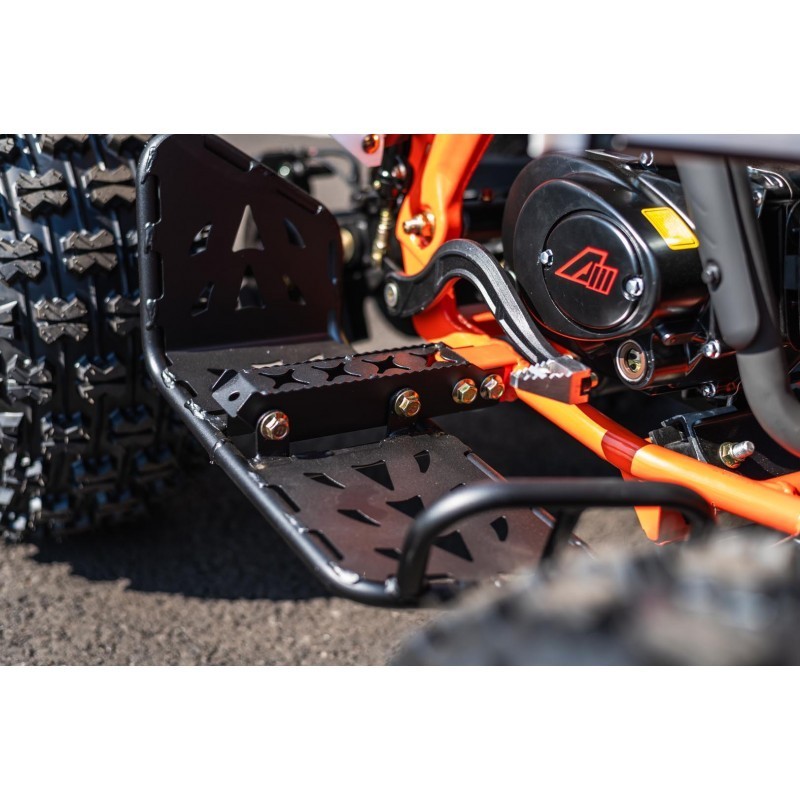 Dìtská ètyøkolka Leramotors By APOLLO AVENGER 125cc - Automat je konstruována pro maximální pohodlí i bezpeèí s vysoce kvalitními hydraulickými kotouèovými brzdami vpøedu i vzadu. Robustní rám a kvalitní tlumení pøední odpruení tvoøí dvojice nastavitelných tlumièù a zadní centrální tlumiè nabízejí komfortní a jistou jízdu i v nároèném terénu. Díky velkým pneumatikám (19x7.00-8" vpøedu, 18x9.5-8" vzadu) ètyøkolka perfektnì drí stopu a poskytuje výbornou trakci na kadém povrchu.