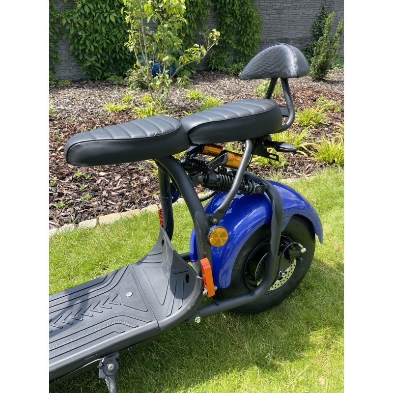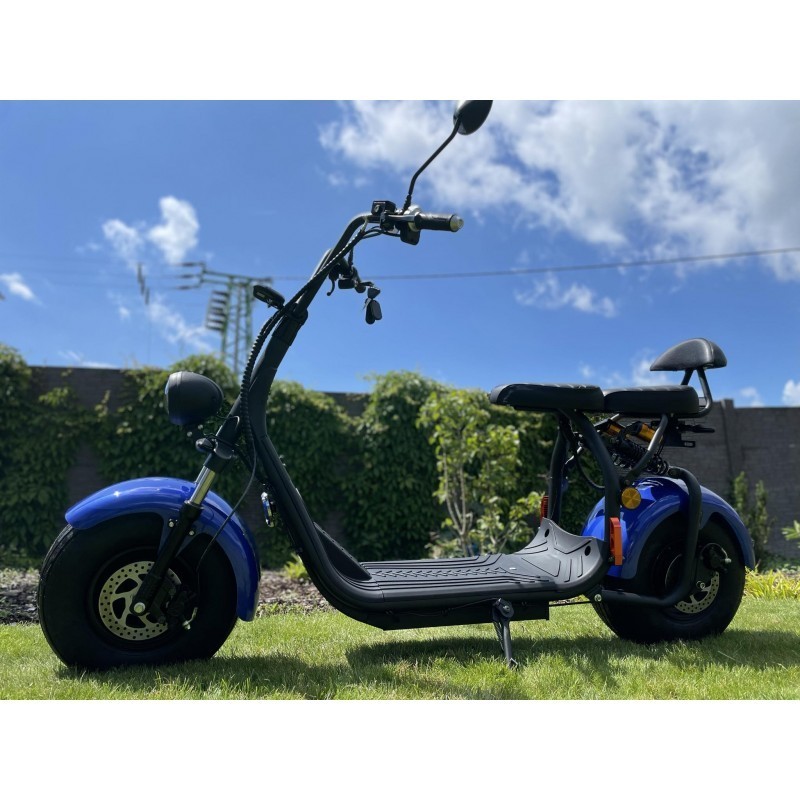 Tato koloběžka vás oslní nadčasovým designem a  motorem o výkonu 2000w který zajištuje silnou akceleraci a rychlost až 65km/h. Ještě pohodlnější jízdu vám zajistí ,výklopné stupačky v přední části, díky kterým můžete mít nohy pohodlně natažené.