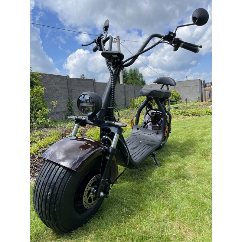 Tento elektroskútr vás oslní nadčasovým designem a  motorem o výkonu 3000w který zajištuje silnou akceleraci a rychlost až 75km/h. Jeho předností je komfortní sedlo na dlouhé cesty a také kvalitní tlumiče pro pohodlnější jízdu.