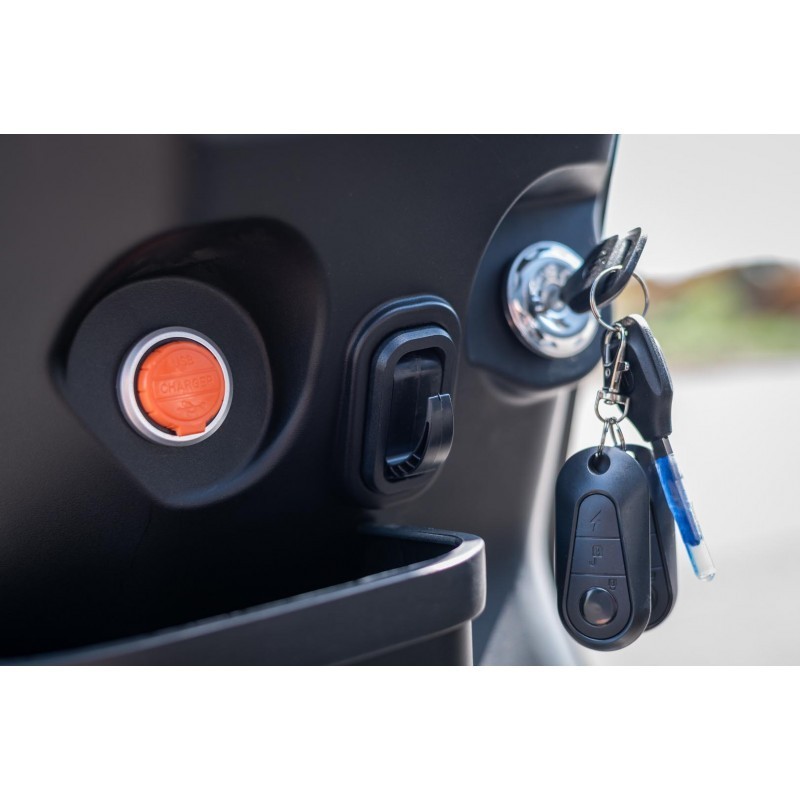 Elektro skútr od LERAMOTORS nabízí vysokou úroveò bezpeènosti a pohodlí. Instalovaný alarm zajistí, e vá skútr bude v bezpeèí, i kdy jej necháte zaparkovaný kdekoliv ve mìstì. S dálkovým ovládáním mùete snadno zabezpeèit a odemknout skútr jediným stiskem tlaèítka, co etøí èas a zvyuje komfort. A se zpáteèkou bude manévrování na úzkých místech hraèkou u ádné sloité otáèení! Ideální elektrický skútr pro seniory? Nejen pro seniory, tyto vlastnosti elektrického skútru zvyují nejen komfort, ale i bezpeènost vaí jízdy, a umoní vám naplno si uít kadý okamik na cestách.