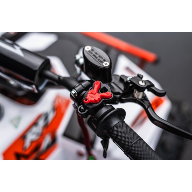 Dìtská benzínová motorka pitbike Leramotors by APOLLO THUNDER 125cc 17/14 E-Start je skvìlou volbou pro mladé terénní jezdce. S výkonem 8,5 kW a maximální rychlostí a 85 km/h poskytuje dostateèný výkon pro zvládnutí nároèného terénu. Ètyøtaktní motor s objemem 125 ccm a vzduchovým chlazením zajiují hladký chod. Manuální ètyørychlostní pøevodovka, pevný ocelový rám a kvalitní off-road pneumatiky nabízejí vynikající stabilitu. Hydraulické kotouèové brzdy zaruèují bezpeèné zastavení i v obtíných podmínkách. Motorka navíc obsahuje pøísluenství, jako je pøední svìtlo a motohodiny, které pomáhají pøi údrbì a zvyují celkový komfort jízdy.