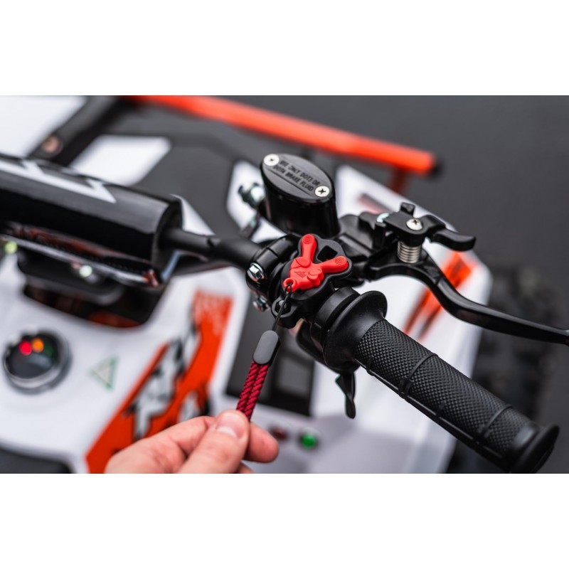 Dìtská elektrická ètyøkolka Leramotors by Apollo Commander 1000W je vybavena dùleitým bezpeènostním prvkem magnetickým bezpeènostním vypínaèem (tzv. "kill switch se zápìstním èidlem"). Tento systém funguje na jednoduchém, ale velmi úèinném principu: na zápìstí dítìte je pøipevnìn magnetický náramek, který je propojený s èidlem na øídítkách. V momentì, kdy by jezdec napøíklad ztratil rovnováhu a spadl z ètyøkolky, se magnet automaticky odpojí a vozidlo se ihned samo vypne. Tím se okamitì pøeruí napájení motoru, èím se eliminuje riziko, e by ètyøkolka pokraèovala v jízdì bez kontroly. Tento chytrý bezpeènostní systém pomáhá pøedcházet úrazùm a pøispívá k vìtí jistotì rodièù pøi jízdì jejich dìtí. Velkou výhodou je, e tato výbava je souèástí standardního balení zcela ZDARMA, bez jakýchkoli pøíplatkù. Leramotors tím potvrzuje, e bezpeènost je u dìtských strojù vdy na prvním místì.