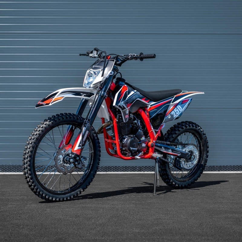 Pitbike Leramotors Killer 250ccm 21/18 je výkonný stroj navržený pro milovníky adrenalinové jízdy v terénu. S čtyřtaktním motorem o objemu 250cc s výkonem 14,5kW poskytuje skvělou rovnováhu mezi výkonem a ovladatelností. Kola o velikostech 21" vpředu a 18" vzadu zajišťují vynikající stabilitu a trakci i v náročném terénu. Moderní design s robustní konstrukcí a spolehlivým odpružením činí z tohoto pitbiku ideální volbu pro jezdce hledající dobrodružství a výkon na off-road tratích. Maximální rychlost až 95 km/h.