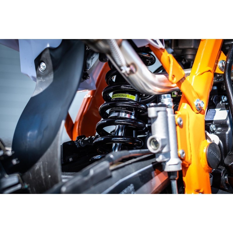 Pitbike Leramotors Killer 250cc 21/18 disponuje moderním centrálním zadním odpružením, které poskytuje skvělou rovnováhu a pohodlí při jízdě v terénu. Tento systém efektivně pohlcuje otřesy a nerovnosti na trati, což zaručuje plynulou a stabilní jízdu i v těch nejdrsnějších podmínkách. Díky centrálnímu odpružení je motocykl snadno ovladatelný a stabilní, což zlepšuje nejen jízdní komfort, ale také pocit bezpečí a kontroly. Bez ohledu na to, zda jedete po rovné cestě nebo v technicky náročném terénu, s Pitbike Leramotors Killer budete mít vždy perfektní kontrolu nad svou jízdou.