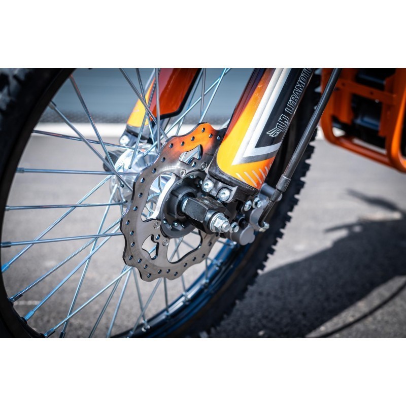 Pitbike Leramotors Killer 250cc 21/18 je vybaven špičkovými zadními brzdami pro maximální bezpečnost a ovladatelnost i v náročných podmínkách. Zadní kotoučová hydraulická (nožní) brzda zajišťuje silný a plynulý brzdný účinek, který ocení jak profesionálové, tak začátečníci. Hydraulický systém poskytuje citlivou reakci a vynikající kontrolu při brzdění, což je zásadní pro off-road jízdu. S touto brzdou se můžete spolehnout na okamžité zastavení, ať už sjíždíte strmé svahy nebo projíždíte těžkým terénem.