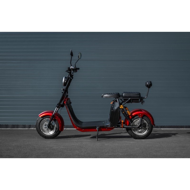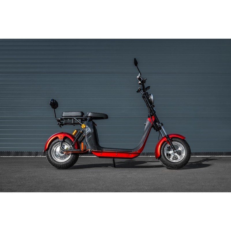 Leramotors Scooters C2 je navíc navržena pro dvě osoby s nosností až 200 kg a pohodlným sedlem. Sedlo je ergonomicky tvarované, čímž zaručuje maximální pohodlí i při delších jízdách. Pod sedadlem se nachází praktická schránka na drobnosti, jako je nabíječka, telefon nebo peněženka, což oceníte na každé cestě. Tento úložný prostor je nejen snadno přístupný, ale také bezpečně chrání vaše věci během jízdy. Díky dostatečné velikosti schránky do ní uložíte i menší nákup nebo další potřebné věci na cestu. Pro ještě větší komfort je sedlo opatřeno zadní opěrkou, která dodává spolujezdci extra podporu a pohodlí. V ceně získáte i exkluzivní výbavu, včetně zrcátek, zadní opěrky a elegantních blinkrů ve stylu Audi, které jiné modely často postrádají.
