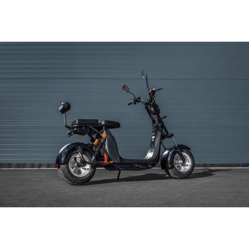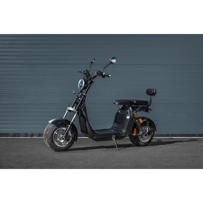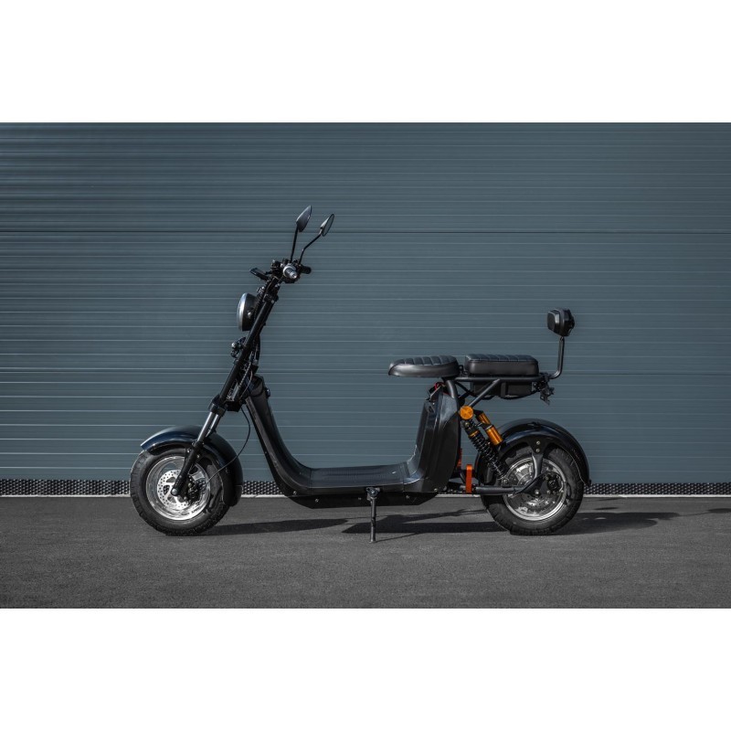 Leramotors Scooters C2 je navíc navržena pro dvě osoby s nosností až 200 kg a pohodlným sedlem. Sedlo je ergonomicky tvarované, čímž zaručuje maximální pohodlí i při delších jízdách. Pod sedadlem se nachází praktická schránka na drobnosti, jako je nabíječka, telefon nebo peněženka, což oceníte na každé cestě. Tento úložný prostor je nejen snadno přístupný, ale také bezpečně chrání vaše věci během jízdy. Díky dostatečné velikosti schránky do ní uložíte i menší nákup nebo další potřebné věci na cestu. Pro ještě větší komfort je sedlo opatřeno zadní opěrkou, která dodává spolujezdci extra podporu a pohodlí. V ceně získáte i exkluzivní výbavu, včetně zrcátek, zadní opěrky a elegantních blinkrů ve stylu Audi, které jiné modely často postrádají.